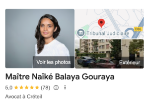 Publié sur Uchiwa mvdaraTrustindex vérifie que la source originale de l'avis est Google. Une avocate exceptionnelle : réactive, bienveillante et très professionnelle. Merci encore pour votre accompagnement !Publié sur YOUGO BOSSTrustindex vérifie que la source originale de l'avis est Google. Je recommande grandement cette avocate gentille, professionnelle,à l'écoute de son client .Publié sur Valentin GadeauTrustindex vérifie que la source originale de l'avis est Google. Maître Balaya Gouraya est une avocate très professionnelle, réactive et à l’écoute. Elle a su me rassurer, m’expliquer clairement chaque étape et prendre ma défendre avec détermination. Je la recommande vivement pour son sérieux et son efficacité.Publié sur Augustin GadeauTrustindex vérifie que la source originale de l'avis est Google. Je remercie Me BALAYA GOURAYA pour son écoute, sa réactivité sa patiente et son professionnalismePublié sur Christophe HENRYTrustindex vérifie que la source originale de l'avis est Google. Je ne peux que recommander grandement Maître Naïké BALAYA GOURAYA!!! Toujours très fine et clairevoyante dans ses analyses, elle a vraiment su me conseiller parfaitement dans mon affaire! De plus, elle s’est révélée d’un grand sang froid lors d’audiences difficiles. Ses plaidoiries sont toujours d’une grande clarté! Merci!!Publié sur Samuel RoudierTrustindex vérifie que la source originale de l'avis est Google. Super écoute super professionnelle. Travail impeccable de qualité. Merci Maître Balaya pour votre accompagnement !Publié sur idir lourciTrustindex vérifie que la source originale de l'avis est Google. Je recommande vivement Maitre balaya . Très professionnel, à l’écoute et réactif. Il a su m’accompagner avec sérieux tout au long de ma procédure. Grâce à son expertise et son implication, tout s’est bien passé. Merci encore pour votre travail !Publié sur G BTrustindex vérifie que la source originale de l'avis est Google. Je recommande à 100%, très professionnelle.Publié sur WidyTrustindex vérifie que la source originale de l'avis est Google. Pendant 1 an j'ai été stressé puis j'ai contacté Maitres BALAYA GOURAYA qui m'a accompagné du début à la fin dans une procédure très longue. Sa sérenité , ses conseils ont été très efficaces, très à l'écoute, une connaissance approfondie en droit et sa qualité techniques dans cette procédure a été très positive. Et pourtant ce n'était pas une mince affaire. Vous pouvez y aller sans hésiter après le premier rendez vous la charge mentale ou la pression anxiogène partira. Je recommande sans hésiter cette Avocate. Merci beaucoup MaîtrePublié sur Momo STILLTrustindex vérifie que la source originale de l'avis est Google. J’ai été accompagné par Maître Naike Balaya dans le cadre d’un dossier concernant ma mère, et je tiens à souligner la grande qualité de son travail. Maître Naike Balaya a fait preuve d’une rigueur exemplaire dans le suivi des procédures, d’une réactivité appréciable à chaque étape, et de conseils particulièrement pertinents. Elle a su traiter notre situation avec sérieux et implication, ce qui a contribué à une nette amélioration de la situation de ma mère. Je recommande vivement Maître Naike Balaya pour son professionnalisme, sa disponibilité et la qualité de son accompagnement. Je remercie infiniment Maître NBG